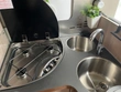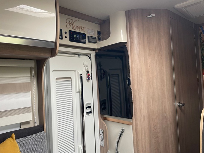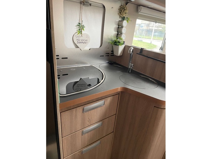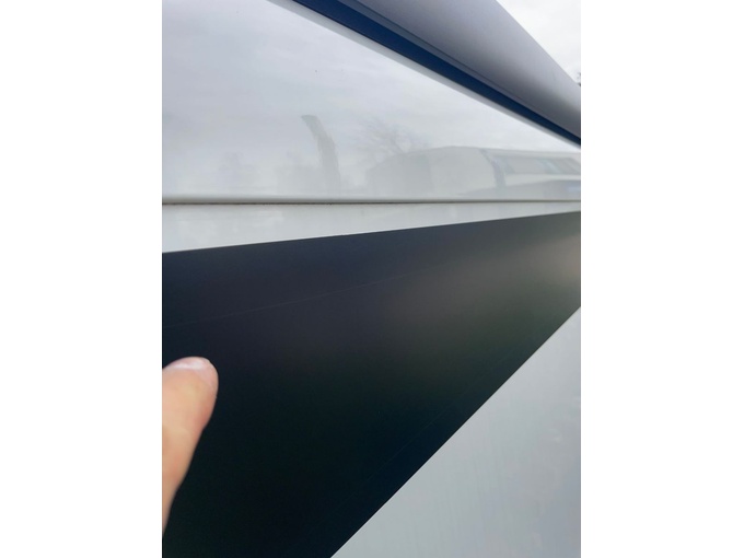 eine, kaum sichtbare Kratzspur auf der Dekorbeklebung unter der Markise (vermutlich von einem Ast).