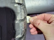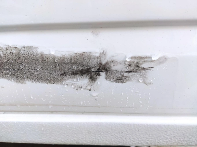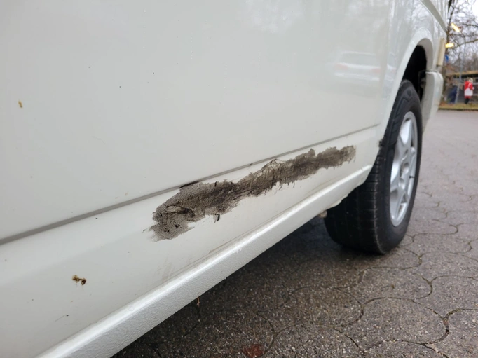 Die Nachlackierung vom Vorbesitzer bröckelt an einigen Stellen ab. Insbesondere an der hinteren Stoßstange.
