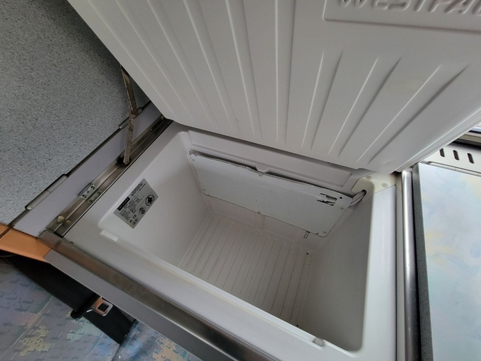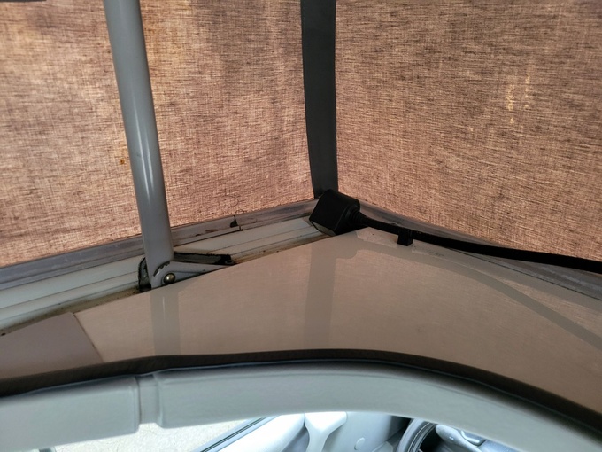 Handbetätigter Hebel zum Schliessen des Schiebefensters in der Schiebetür ist abgefallen. Ist vorhanden, aber muss wieder angeklebt werden.