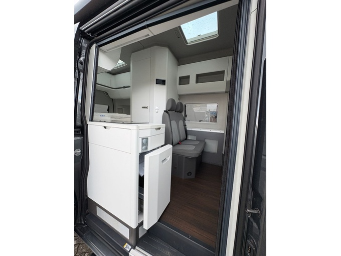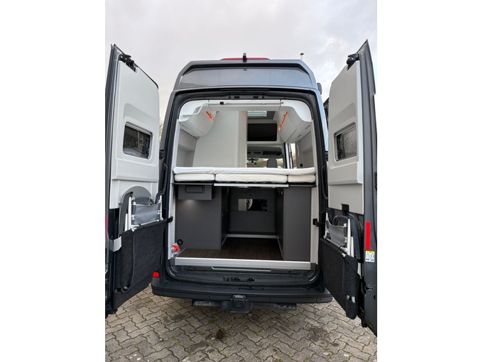 Bei der Auswahl und Konfiguration haben wir uns bewusst viel Zeit genommen und das Fahrzeug in den letzten drei Jahren gezielt mit hochwertigem Zubehör für mehr Komfort und Autarkie ergänzt. Dazu gehören u. a. General Grabber Reifen, Almatros Viskose‑Topper, Project Camper Magnet‑Thermomatten, ein LE300 BOS 4er‑Batterieblock (112 Ah / 100,8 Ah) sowie eine AlphaDynamik Trittstufe.