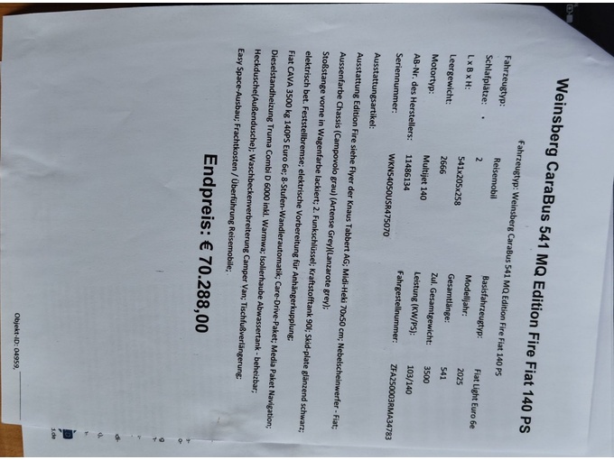 | Zulässiges Gesamtgewicht in kg | 3.500 kg |
